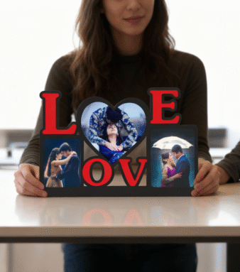 Celebrate your beautiful moments with this elegant Love photo frame! Crafted from premium-quality MDF wood, this 8-inch wide frame features three photo slots to showcase your favorite couple or family pictures. The vibrant red “Love” design with heart accents adds a romantic touch, making it perfect for gifting on anniversaries, birthdays, or Valentine’s Day. Ideal for tabletops, shelves, or bedside décor.
