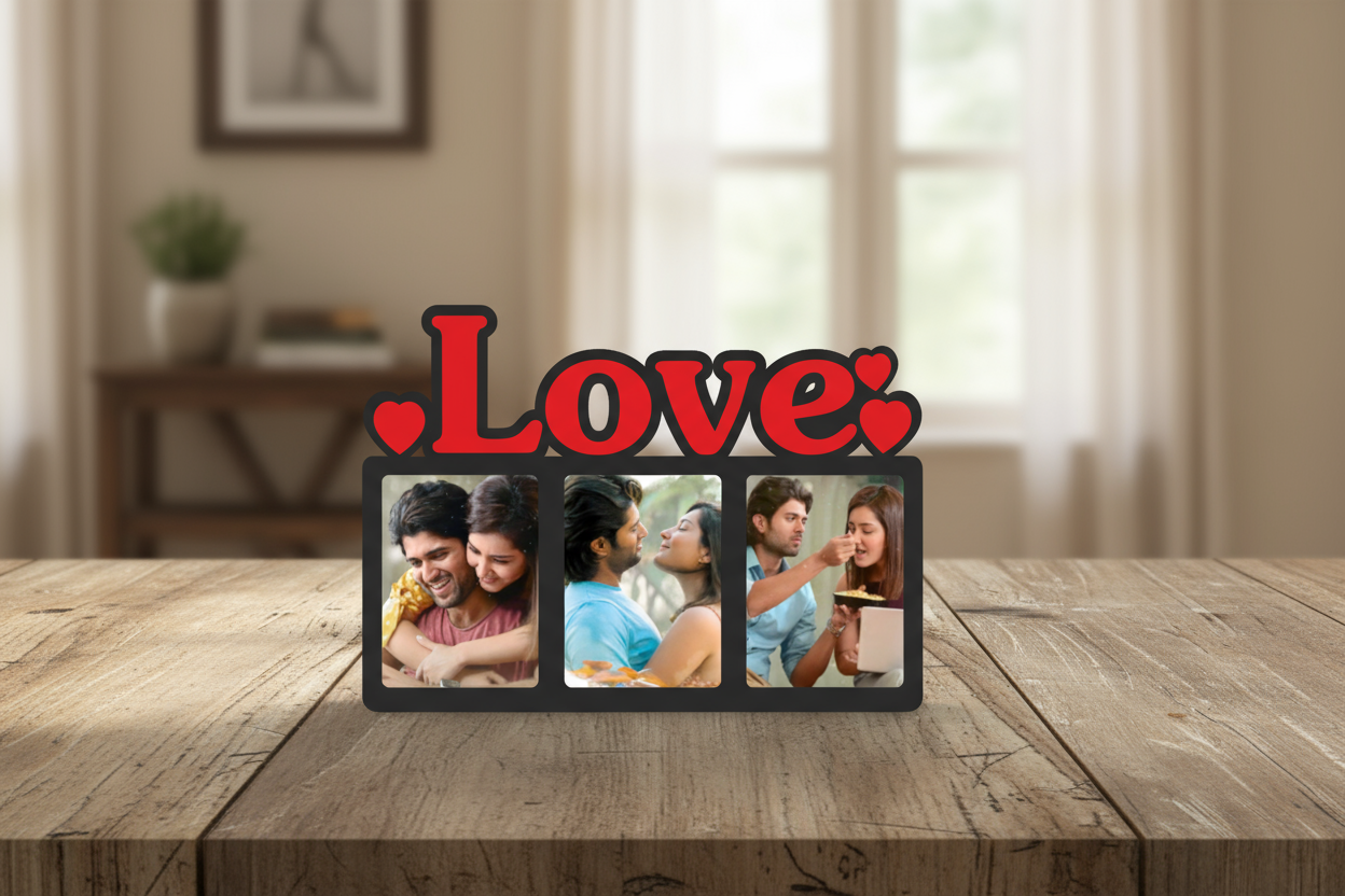 Love Photo Frame – 3 Picture MDF Table Décor (8 Inch)