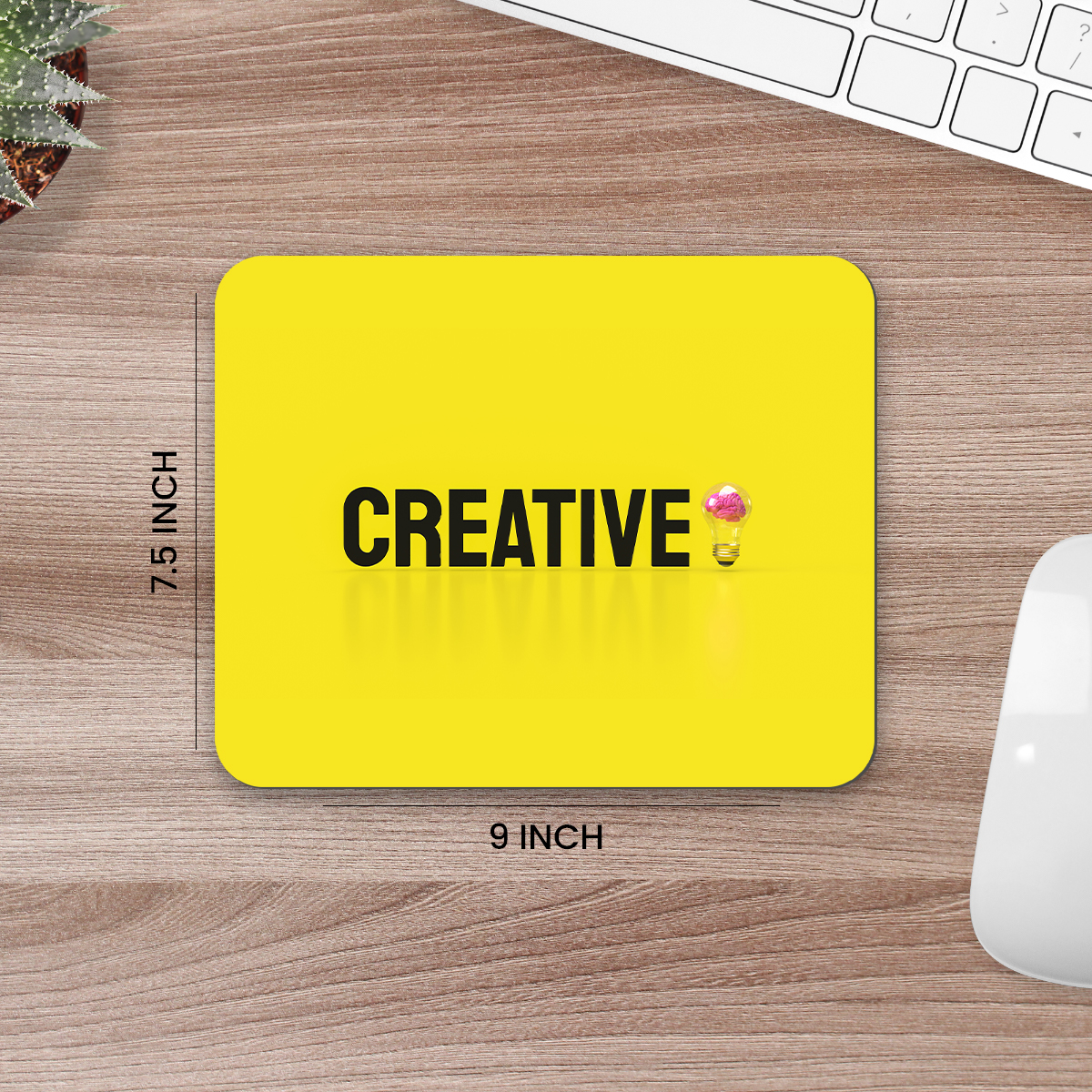 Add a pop of color and inspiration to your workspace with our Creative Yellow Printed Mouse Pad. Featuring a vibrant yellow background with the bold word “CREATIVE” and a light bulb graphic, this mouse pad perfectly reflects innovation, motivation, and style — making it an ideal choice for designers, students, and professionals.